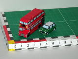 If you print it in postcard size, it will be an N gauge size. The patterns are “London Bus” and “New Rover Mini”. |