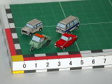 If you print it in postcard size, it will be an N gauge size. The patterns are “Citroen H Van”, “Citroen 2CV”, “Volkswagen Van” and “Fiat Panda” |